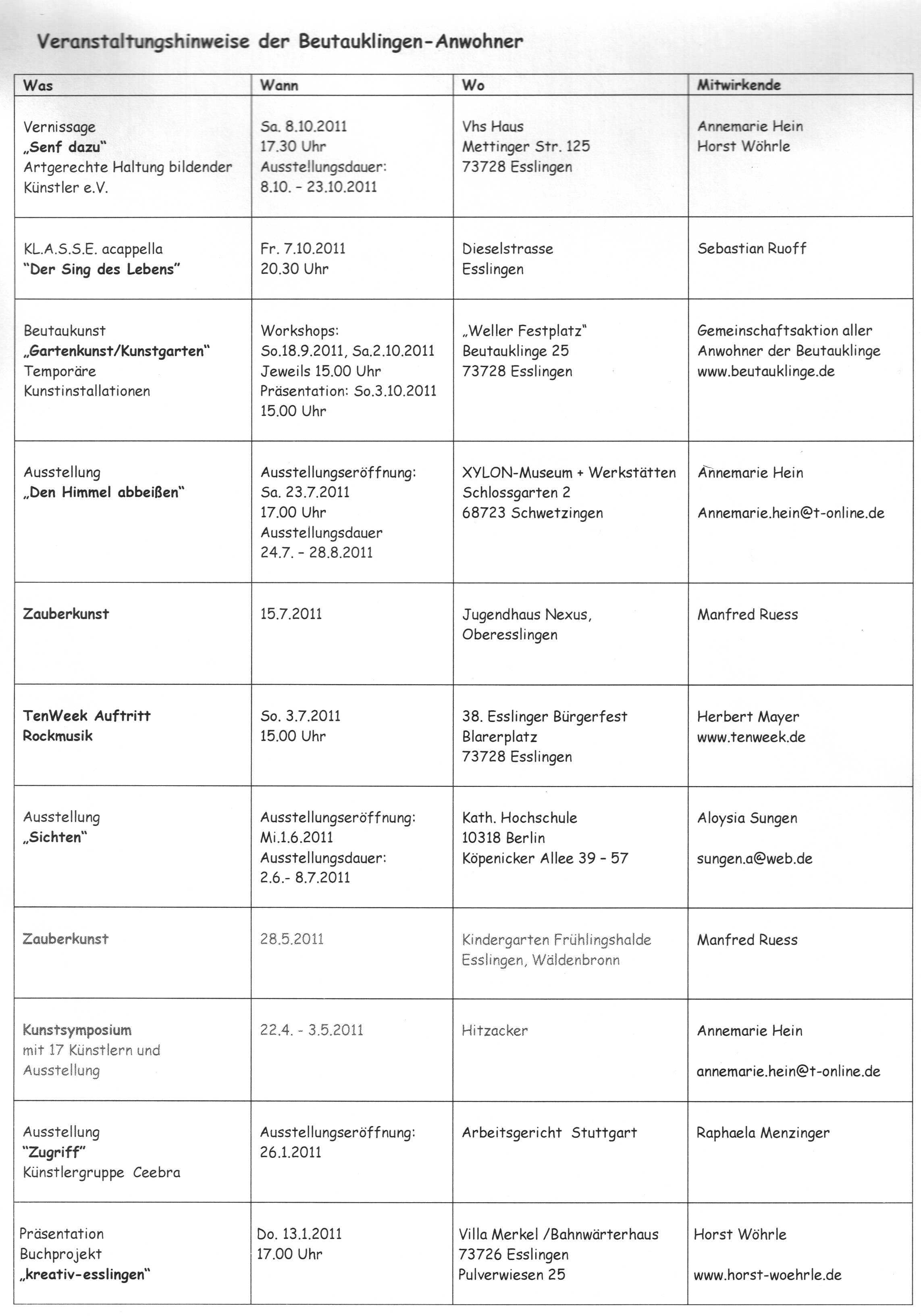 Interessierte bei Ilse Ruess, Beutauklinge 14 (Hauptpunkte: Organisation und Werbung).