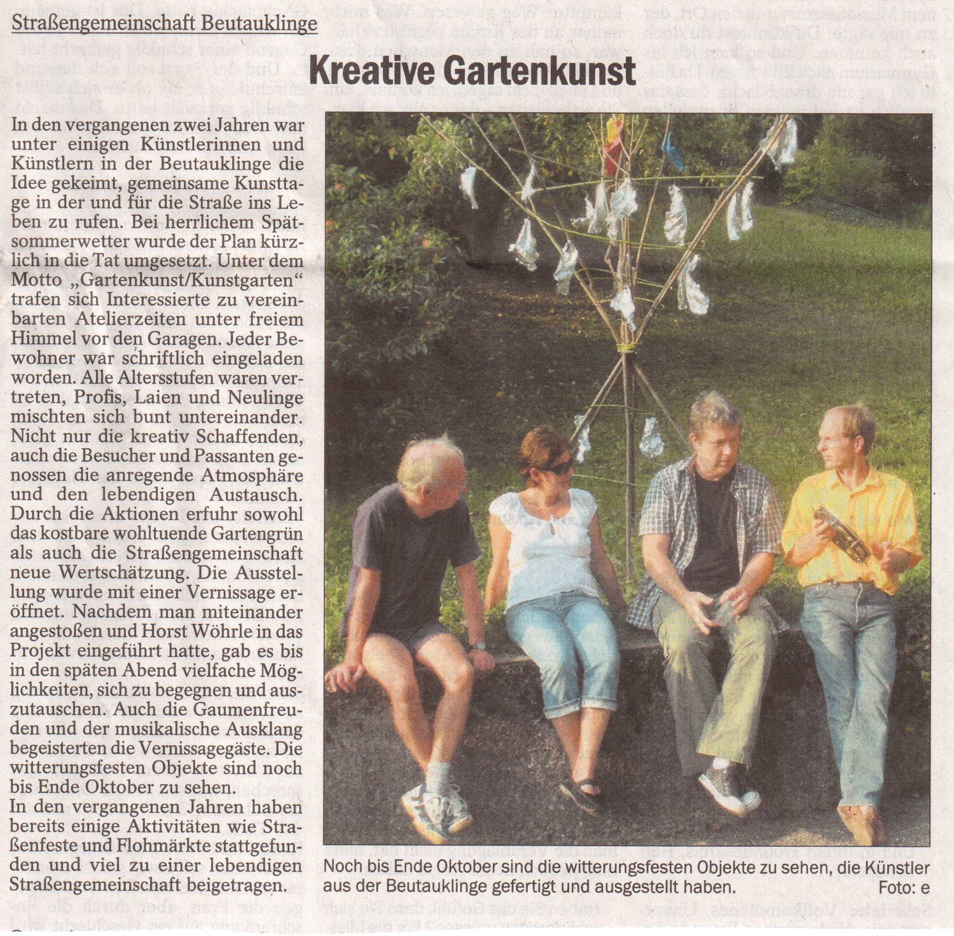 Nachtrag zum Garagen-Flohmarkt: wie man von verschiedenen Nachbarn hört, war das eine gute Sache. Es kam die Idee auf, ihn nächstes Jahr zu wiederholen, und zwar dann am Tag des "Beutau-Flair".